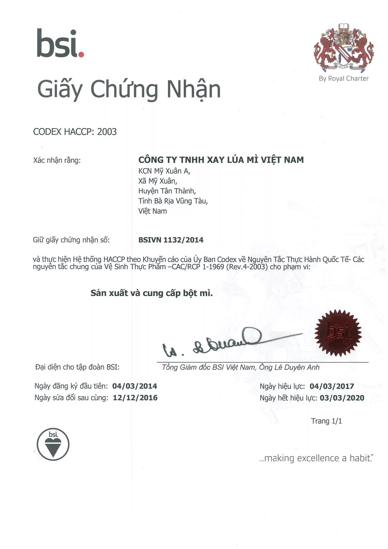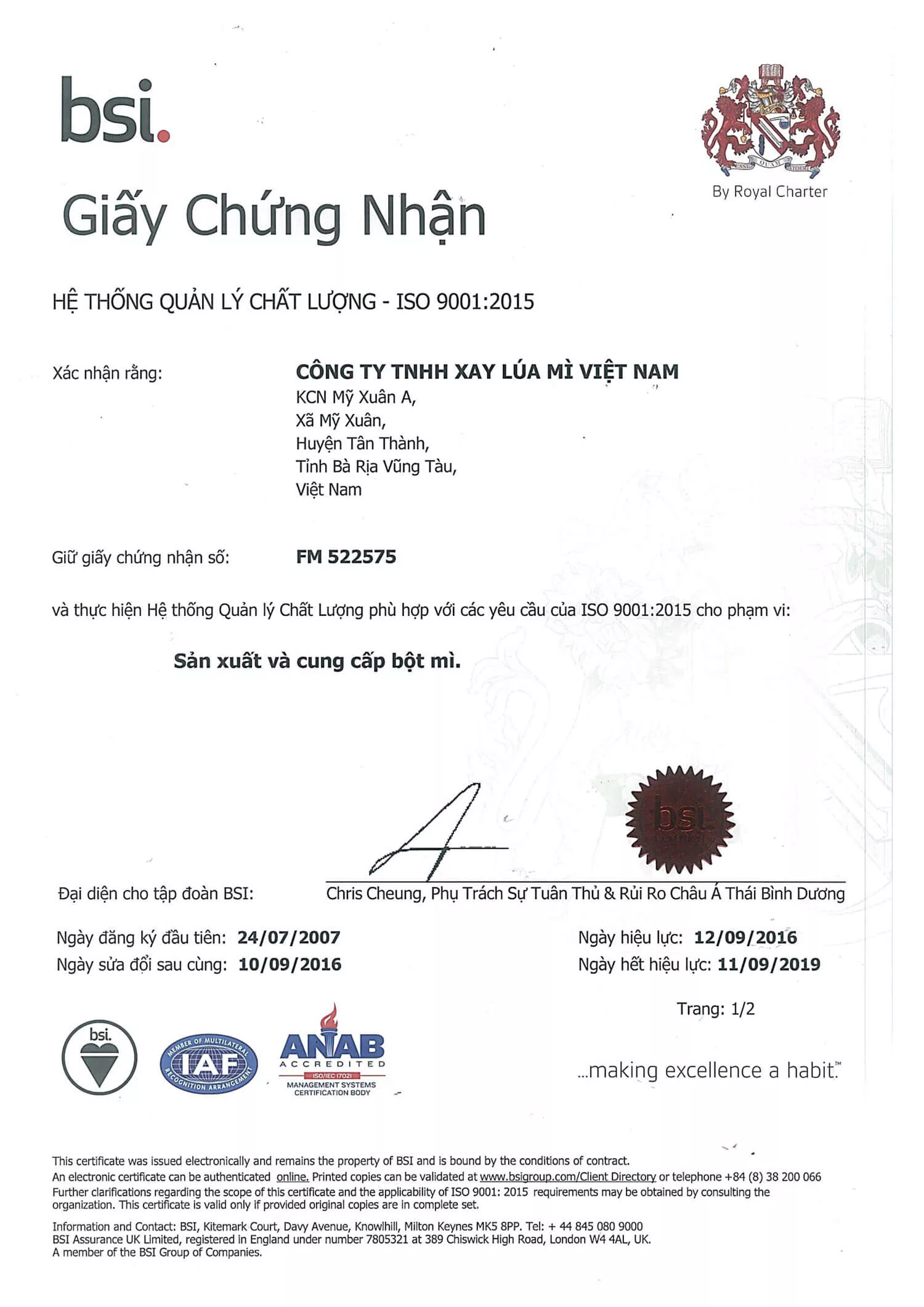VFM and VFM-W are a top flour mill leader to apply high quality standards, food safety and hygiene regulations.VFM and VFM-W are the pioneer in Vietnam's flour industry and granted certifications of AIB, FSSC 22000, ISO 14001, và ISO 45000